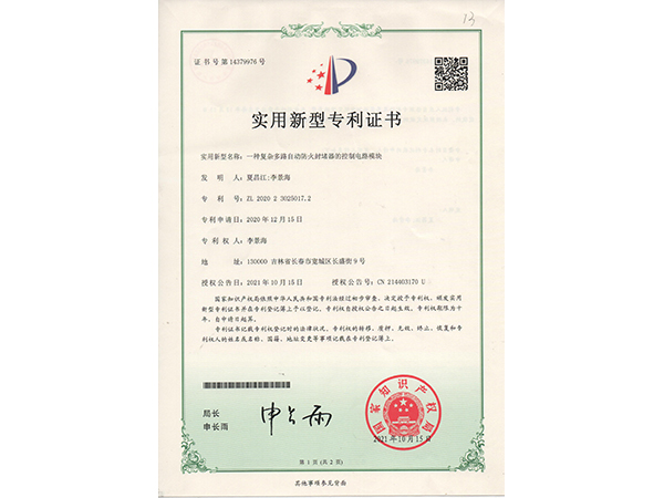 實(shí)用新型專利證書